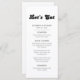 El elegante menú retro negro y blanco Let's Eat Boda le da un toque de elegancia a su recepción, con un diseño monocromo de moda con un encanto de inspiración vintage que combina a la perfección con cualquier tema boda. Diseñado para mostrar los platos cuidadosamente escogidos en un formato claro y elegante, este menú no sólo guía a los clientes a través de la experiencia gastronómica, sino que también añade un toque de sofisticación a cada lugar. Su audaz tipografía retro y su atemporal estilo blanco y negro lo convierten en un detalle destacado que realza tu decoración y refleja tu gusto personal. Más que una lista de platos, crea anticipación, eleva el ambiente y deja una impresión duradera en los clientes.
