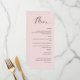 Elegante boda rosa polvoriento o carta de menú de la cena. Diseño contemporáneo, sencillo y elegante con una hermosa caligrafía escrita a mano. Color de fondo frontal y posterior en un tono rosa polvoriento. Capacidad para cambiar el color de fondo frontal y/o posterior seleccionando "personalizar más adelante". Diseño disponible en una variedad de opciones de color. Parte de nuestra colección de productos y Rótulos de eventos Dusty Rosa y Dusty Blue" con una variedad de productos de coordinación disponibles, incluyendo tarjetas del plan de asientos y números de tabla y signos de eventos.