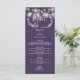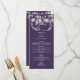 Con luces de cuerdas de bonito y ilustraciones rústicos de flores dibujados a mano en la guirnalda, personaliza este elegante menú morado con la información especial del menú del día de bodas. Diseñado por Thisisnotme©