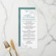 Este bonito menú le dará un toque de elegancia a la recepción de bodas. Cuenta con un bonito diseño con unos adornados rizos de Relieve metalizado gris plateado y remolinos sobre un fondo blanco clásico, con texto de color verde azulado o turquesa y una espalda de mármol. Hay espacio para los nombres de la pareja y la fecha del boda, y el texto es completamente personalizable. Elegante, elegante y con mucho brillo, este menú le dará un toque de elegancia y gracia a su celebración.