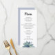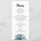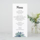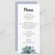 Elegante menú de recepción de Bodas de Verdeles, con un diseño verde suculento sobre un fondo blanco. La parte posterior tiene un fondo púrpura pálido que acentúa la luminosidad del frente. Con letras personalizares, puedes añadir tus propias opciones de comida. Ideal para añadir un toque botánico del desierto a tu día especial.