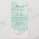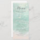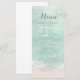 Los románticos menús de boda con temática costera presentan una hermosa acuarela azul turquesa abstracta que resalta la ola oceánica y el fondo de la playa, con un guión elegante y elegantes detalles de los eventos, modernos y sencillos, ideales para bodas en la playa de arena, bodas con destino tropical, boda con temática oceánica costera. Vea todas las piezas coincidentes de la colección.