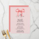 Ella está atando el nudo arco rosado Menú de ducha de novia