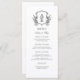 Elegante menú de Boda de Monograma Escudo Vintage. Las iniciales monogramadas enmarcadas por una mano elegante ilustran escudo vintage en blanco y negro, sencillo pero sofisticado. La elección perfecta para los bodas modernos, clásicos y sencillos. Por favor, compruebe las piezas coincidentes de la colección.