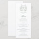 Esta elegante tarjeta del menú Bodas Elegantes con Escudo floral verde sabio cuenta con un escudo floral vintage de estilo chinoiserie que enmarca el elegante guión de boda de caligrafía.