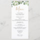 Diseñado para coordinar con nuestra colección de bodas de vegetación mixta, este menú de personalizable incluye un follaje acuático verde con texto dorado y gris y un marco dorado en la parte posterior. Para realizar cambios avanzados, vaya a la opción "Hacer clic en el personalizar más adelante" en Personalizar esta plantilla.