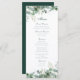 Esta carta cuenta con un eucalipto de color verde esmeralda y productos botánicos de color verde salado. Personalizar todas las selecciones de menú para la celebración