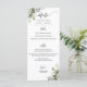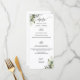 Este menú de eventos boda presenta un toque elegante con un guión moderno y hermoso de caligrafía con texto regular acompañado de un esquema de hojas de follaje de eucalipto acuarela. Vístelo con tu propia imagen en la parte de atrás y guau a tu invitado. Se puede personalizar el nombre, la fecha y la ubicación de las parejas. Sólo se puede cambiar el color de las elegantes formas caligráficas de "menú", "entrante", "entrante" y "postre". Puede personalizar el menú de todas formas que desee.