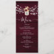 Deléitese con su elegante y rústica carta de bodas de madera, en la que podrá deleitarse con ricos florales de color burdeos en tarros de albañil, un monograma personalizado y brillantes lámparas de cuerda. El cálido fondo de madera y la moderna escritura caligráfica crean la combinación perfecta de encanto rústico y elegancia refinada. Ideal para bodas en otoño, granero o al aire libre, esta carta le da un toque personalizado a la recepción y le da un toque de tono a una experiencia inolvidable.
