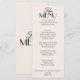 A fancy and retro luxury bright wedding dinner menu. Which features chic template design of old money vintage black and cream white old money background and black typography and fancy menu. Perfect and matching with the whole suite.