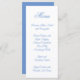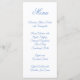 Menú boda azul y blanco con flores de maíz. Personalizar la posición del texto, el estilo del tipo de letra, el tamaño o el color. El fondo es azul polvoriento en la parte posterior, blanco en la parte delantera.
