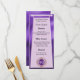Un menú elegante con un patrón de Relieve metalizado y púrpura y su número de cumpleaños único en purpurina y oro.