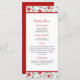This festive Christmas menu is framed with lush seasonal botanicals—poinsettias, pinecones, holly berries, and evergreen sprigs—creating a warm, elegant border that evokes holiday cheer. The layout is neatly divided into four sections, each spaced for clarity and visual balance. Decorative flourishes and classic serif fonts lend a traditional, celebratory feel, while the rich reds and greens reinforce the cozy, wintry theme. The overall design invites guests to savor a thoughtfully curated feast, blending rustic charm with refined presentation.