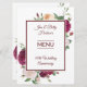 Celebra el 50 aniversario del Boda de una pareja especial con esta audaz y floral "Carta de menú de la recepción" en blanco y borgoña. Para personalizar, simplemente inserte su texto en nuestra plantilla sencilla. No olvide ver el conjunto completo de accesorios para este "50º Aniversario Boda". ¡Disfrútalo! (Tenga en cuenta que el número 50 se puede cambiar simplemente seleccionando e introduciendo otro número.)