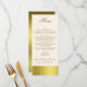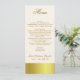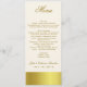 Menú flaco elegante de la tabla de la recepción nupcial, hecho en marfil, con los gráficos de la banda dorada a lo largo de la parte inferior, y de cubrir la parte posterior. El texto de encargo hecho en un marrón de oro está listo para personalizar para su recepción nupcial. Adición preciosa a nuestro sistema dorado elegante de la boda.