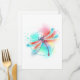 Rojo, volador, dibujado artísticamente, en colores brillantes con hiridismo texturizado, alas azules sobre fondo blanco, pintadas con salpicaduras de pintura acuarela. Flora de dragón roja brillante.
