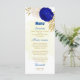 Menú flor azul real y blanca boda botánico de oro