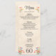 Elegante Flor 60 años Fiesta Floral 60 cumpleaños menú. Eleva tu celebración de cumpleaños con esta impresionante tarjeta de menú de cumpleaños número 80, que incluye un elegante diseño floral de acuarela. Con flores suaves y delicadas enmarcando las esquinas y un audaz "60" como punto focal, esta carta de menú es el complemento perfecto para su elegante evento. Personalice los detalles del menú para que sus huéspedes puedan disfrutar, destacando cada plato, desde entrantes hasta postres y bebidas. La decoración floral de buen gusto añade un toque de encanto y sofisticación, lo que lo convierte en una elección ideal para una celebración memorable y elegante de los 60 años. ¡Disfrútalo!