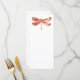 Dibujado artísticamente, dorado, libélula con joyas de color rojo y alas decoradas con rojo, floreciente, cerezo japonés con joyas sobre fondo blanco. Dragonfly de oro.