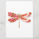 Dibujado artísticamente, dorado, libélula con joyas de color rojo y alas decoradas con rojo, floreciente, cerezo japonés con joyas sobre fondo blanco. Dragonfly de oro.