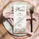 Carta de boda de flores silvestres de campo con encabezamientos caligráficos elegantes y un borde de flores silvestres en tonos rosas, amarillos, azules y blancos. Flores rústicas, un elegante estilo y una paleta de colores multiestacionales se combinan, lo que le confiere un encanto sin esfuerzo. El tapiz de los colores de este diseño floral de bonito complementará los ambientes bodas desde fincas de campo hasta jardines bohemios informales. Para coordinar invitaciones, papelería, juegos y decoración del día del evento, por favor visite mi Colección de Bodas de Flores Silvestres de mi país o envíeme un mensaje para añadir cualquier artículo adicional que necesite.
