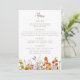 Personalizar este menú con temática de flor silvestre para su boda o evento especial. Presenta un prado de flores en tonos rosas, púrpura, naranja y amarillo. La redacción se puede cambiar con el editor en línea.