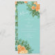 Menú Floral de Bodas Verde azulados de Peach Aqua