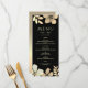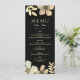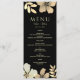 Moderno, elegante, moda, menú boda negro con flores doradas acuarelas.