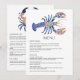Menú Floral Lobster Coastal Nautical Beach Wedding