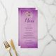 Este menú de recepción de boda presenta un hermoso menú de recepción de boda floral púrpura que utiliza una exhibición floral púrpura sobre un fondo púrpura. Con "Menú" escrito en la parte superior en letra cursiva púrpura, toda su información se imprime en letra legible púrpura sobre un fondo púrpura. Personalice como desee.