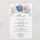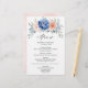 Menú Floral rosa Rubor con pizarra azul de la mari