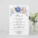Menú boda floral rosa azul marino con flores y un elegante ramo de azul marino, azul real, blanco, rosa de jardín de colores vivos, hidraangea y hojas de eucalipto verde salado. Comuníquese conmigo para obtener ayuda sobre la personalización o si necesita cualquier otro producto con este diseño.