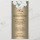 Un sofisticado y elegante menú de boda blanco y bronce con un bonito manojo de rosas blancas en la parte superior de la carta. En la parte trasera hay un segundo ramo blanco de rosa, todo ello con un lujoso y elegante fondo metálico de bronce. Tenga en cuenta que este elegante menú de bodas ha sido especialmente hecho para coincidir con una invitación de boda ya existente, que puede encontrar justo aquí: https://www.zazzle.com/z/fjswur0l?rf=238128988549013315