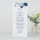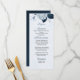Menú flores azules polvorientas hojas de la marina boda