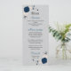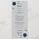 flores azul marino y blanco con hojas de plata menú boda Los detalles purpurinas se simulan