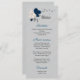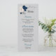 Menú flores blancas azul marino hojas de plata boda