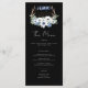 Crystals de la luna Flores Boho Menú Boda metafísico con fondo negro. Este conjunto de invitados a la boda de Boho incluye fases de media luna de color y luna llena con flores blancas y azules, puntos de cúmulo de cristal dorado, vegetación y ánimos. Una elección perfecta para una unión espiritual mística o metafísica, ayuno o boda. Los colores de fondo y los tipos de letra pueden cambiarse fácilmente para satisfacer sus necesidades.