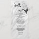 bellas flores blancas y negras con hojas grises sobre fondo de mármol gris menú boda botánico. Los detalles del purpurina se simulan