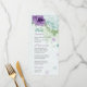 flores románticas azules y violetas verdes hojas botánicas menú boda
