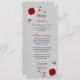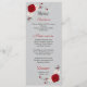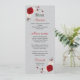 flores rojas y blancas con hojas de plata menú boda Los detalles purpurinas se simulan