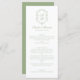 Menú Formal Classic Sage Green Monogram Crest Wedding
