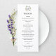 Menú Formal Floral Monogram Crest Wedding