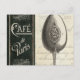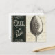 Estudio de Pela del ©/Apple salvaje. Una imagen de una cuchara con un menú en el lado. Hay palabras escritas en el fondo coloreado moreno detrás de la cuchara.