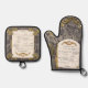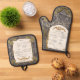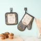 ¡A algunos les gusta el calor! Pero puedes manejarlo con estilo con nuestro sofisticado portamaletas de estilo francés y/o mitín de horno. Estos artículos se coordinan con otros productos para la cocina y el comedor en nuestra colección de menús franceses. El diseño de los productos incluye excelentes platos y vinos de un auténtico menú de restaurante francés vintage. Los bordes son de taupe, negro y crema, con una elegante huella damasquera, con un aspecto dorado,