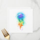 Grandes medusas de azulejo brillantes, de dibujos artísticos, con largos tentáculos en blanco, pintadas con fondo multicolor de acuarela. Mariscas arcoiris.