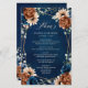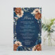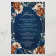 Elegante azul marino, terracota , Naranja de tierra temática floral menú boda con elegante ramo de azul marino, rosas de color terracota y hojas de eucalipto verde. Comuníquese conmigo para obtener ayuda sobre la personalización o si necesita cualquier otro producto con este diseño.