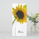 Personalizar el bonito Sunflower en el menú Boda blanco con los detalles de la comida que se sirven en la cena de ensayo, el almuerzo con ducha de novia o la recepción matrimonial añadiendo la ensalada o el primer plato, el segundo y el postre o el tercer plato. Personalízalo con los nombres de la novia y el novio, la ubicación del lugar y la fecha del evento. La elegante carta de boda florida incluye una fotografía botánica de un girasol amarillo en el tallo, en un jarrón de cristal de fondo blanco brillante. Perfecto para la pareja que planea una boda elegante en junio, julio o agosto, o en septiembre, octubre o noviembre otoño.