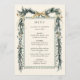 This wedding menu features a watercolor winter greenery garland adorned with pine branches, holly berries, botanical foliage, gold ribbon bows, and simple calligraphy. For more advanced customization of this design, please click the BLUE DESIGN TOOL BUTTON above! Matching items are also available.
