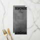 Trae elegancia a la mesa en tu día especial con este magnífico y oscuro diseño de menú Boda Gótico Gris Medieval Black Ornate Lace con fondo de color gris oscuro, detalles preciosos de elementos medievales ornamentales y tu texto personalizado en esta plantilla fácil de editar.