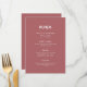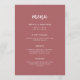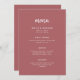 Esta elegante y minimalista tarjeta de menú boda cuenta con una tipografía moderna de escritura blanca y un texto limpio y sans serif para un diseño sencillo y elegante de color terra rosa que le encantará.